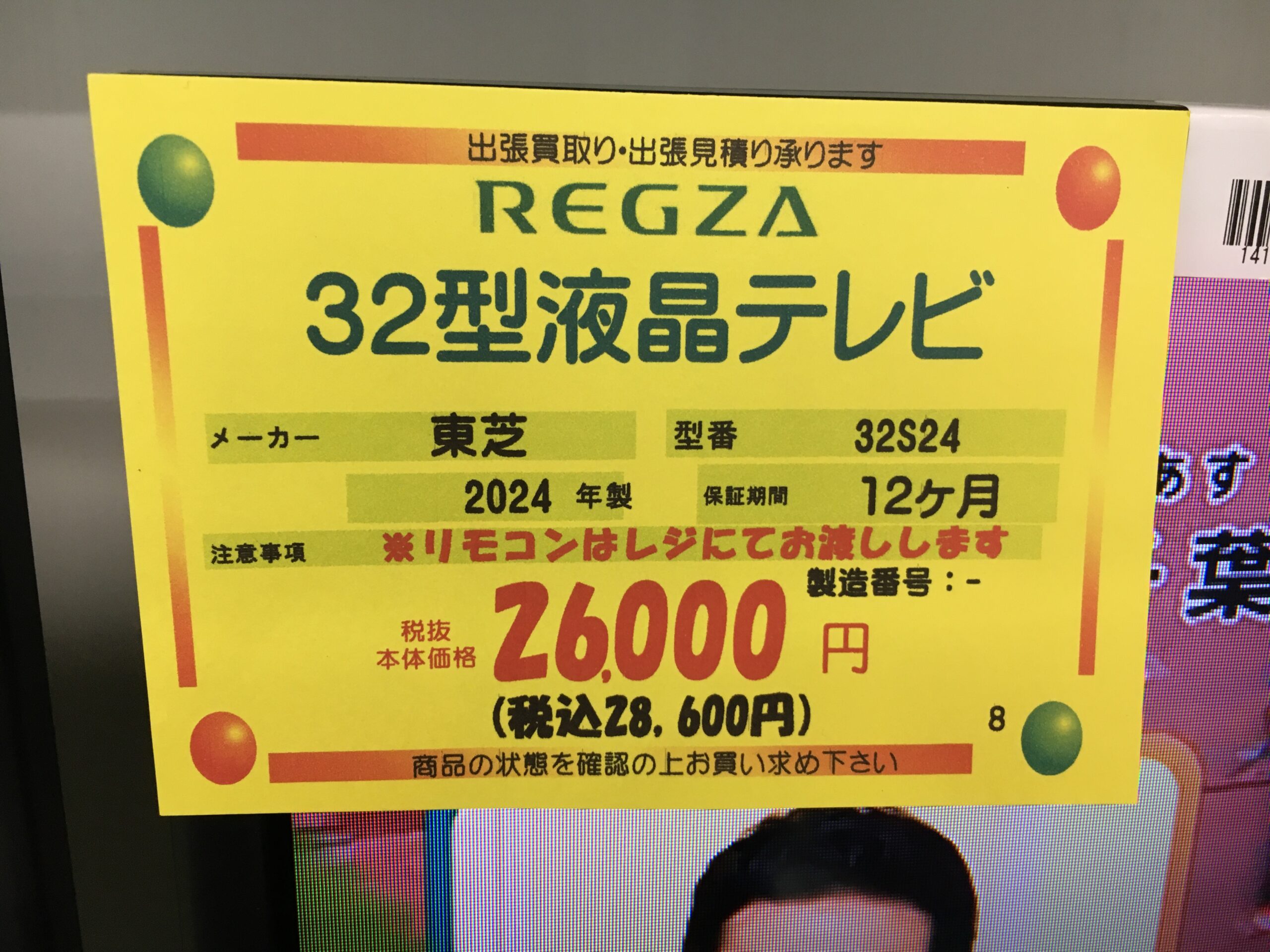中古 東芝 レグザ 32型液晶テレビ 2024年製 32S24