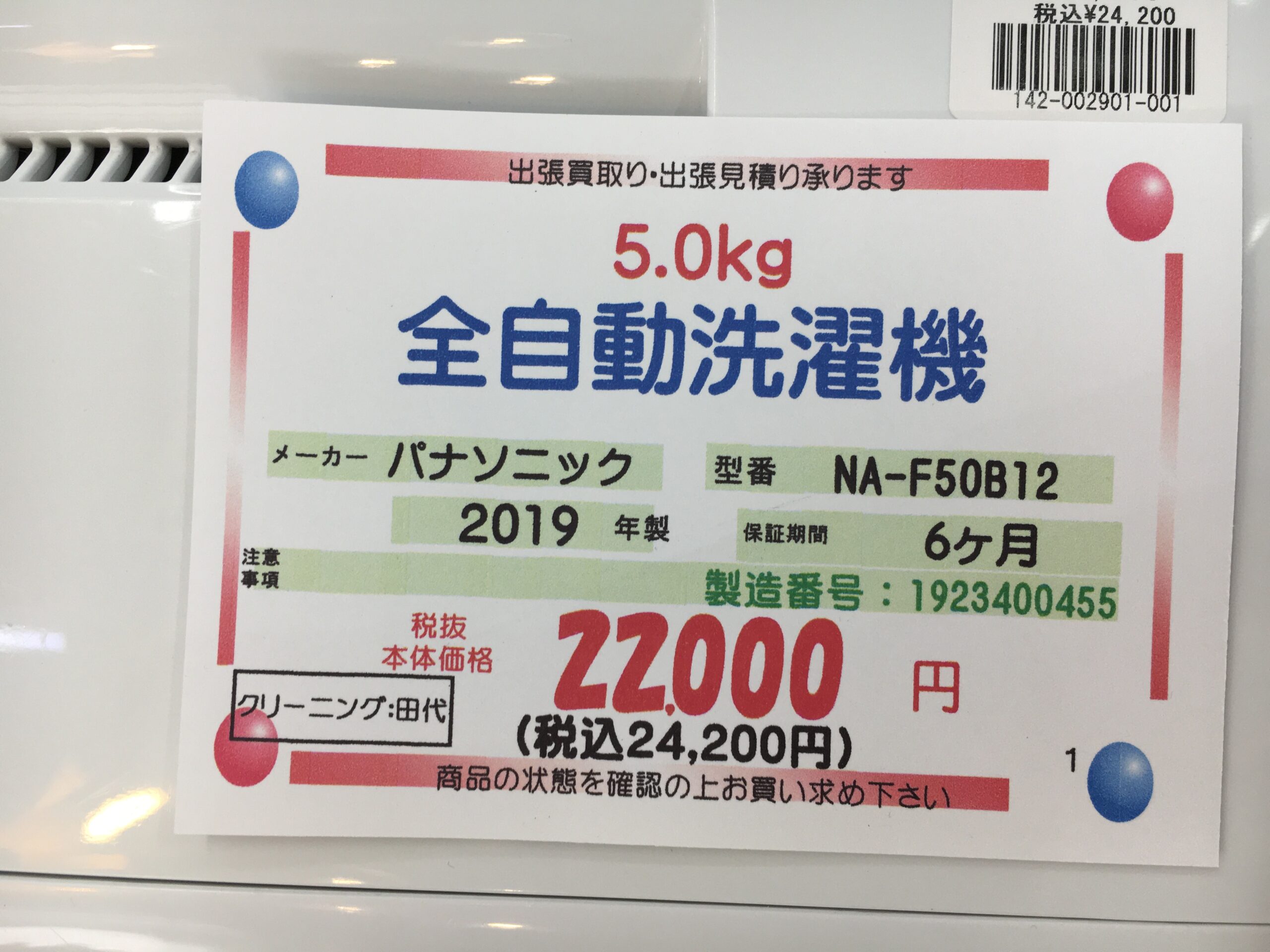 中古【分解清掃済み】パナソニック 5.0K 全自動洗濯機 2019年製 NA-F50B12
