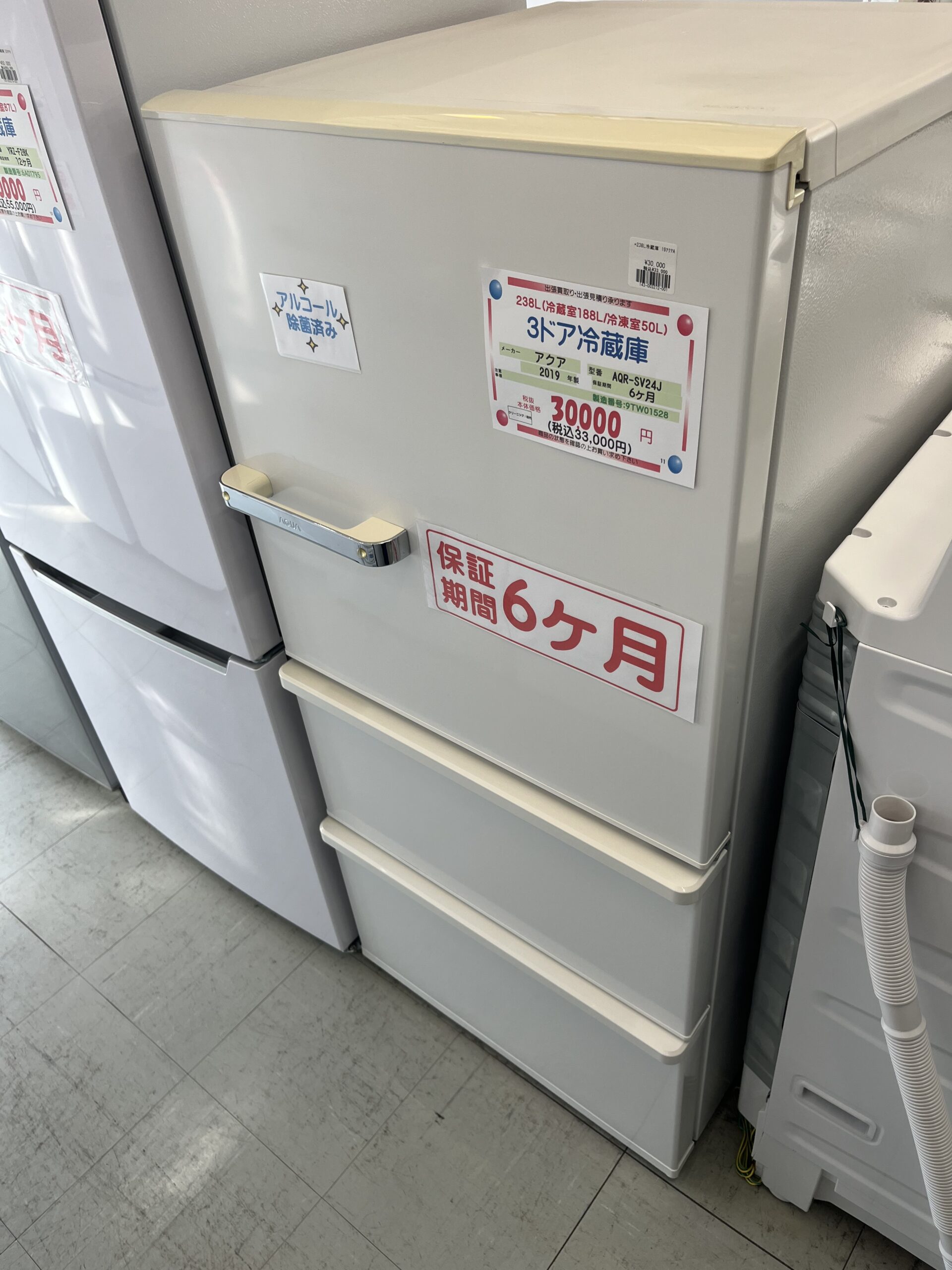 中古 アクア 238L 3ドア冷蔵庫 2019年製 AQR-SV24J
