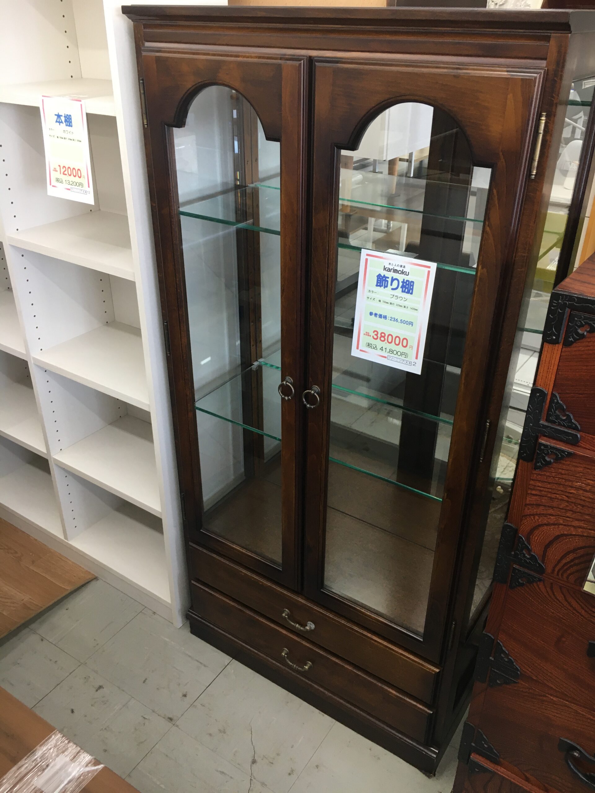 中古 カリモク 飾り棚 ブラウン