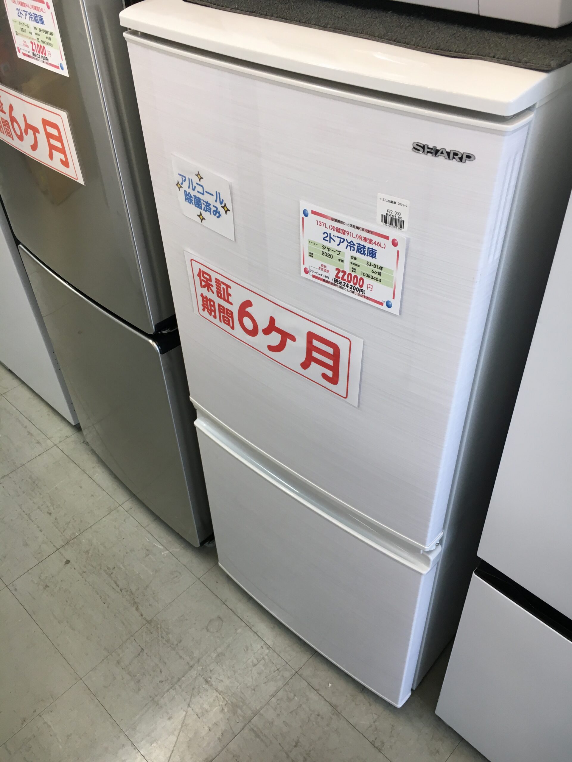 中古 シャープ 137L 2ドア冷蔵庫 2020年製 SJ-D14F