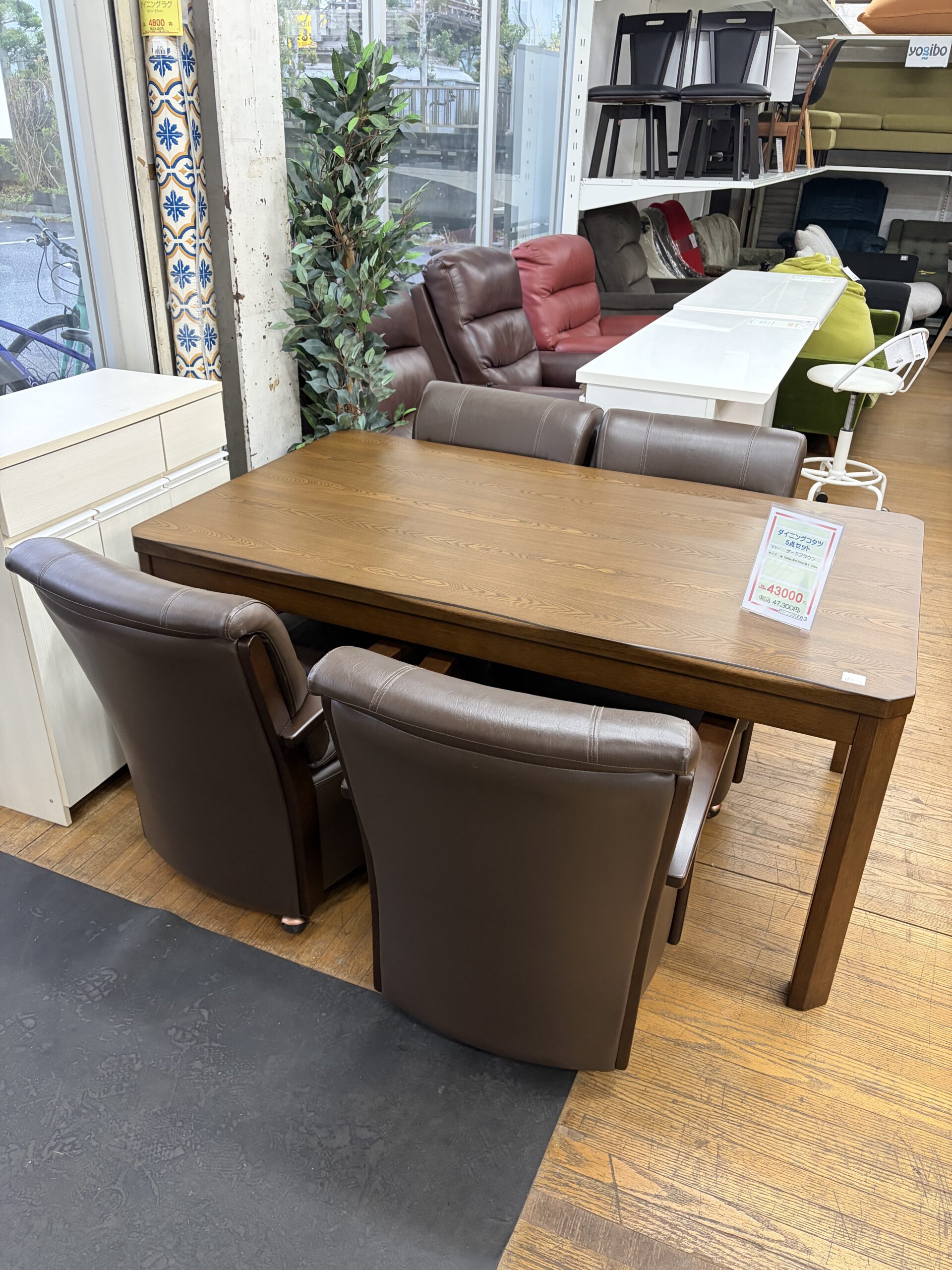 中古 ダイニングコタツ5点セット ダークブラウン