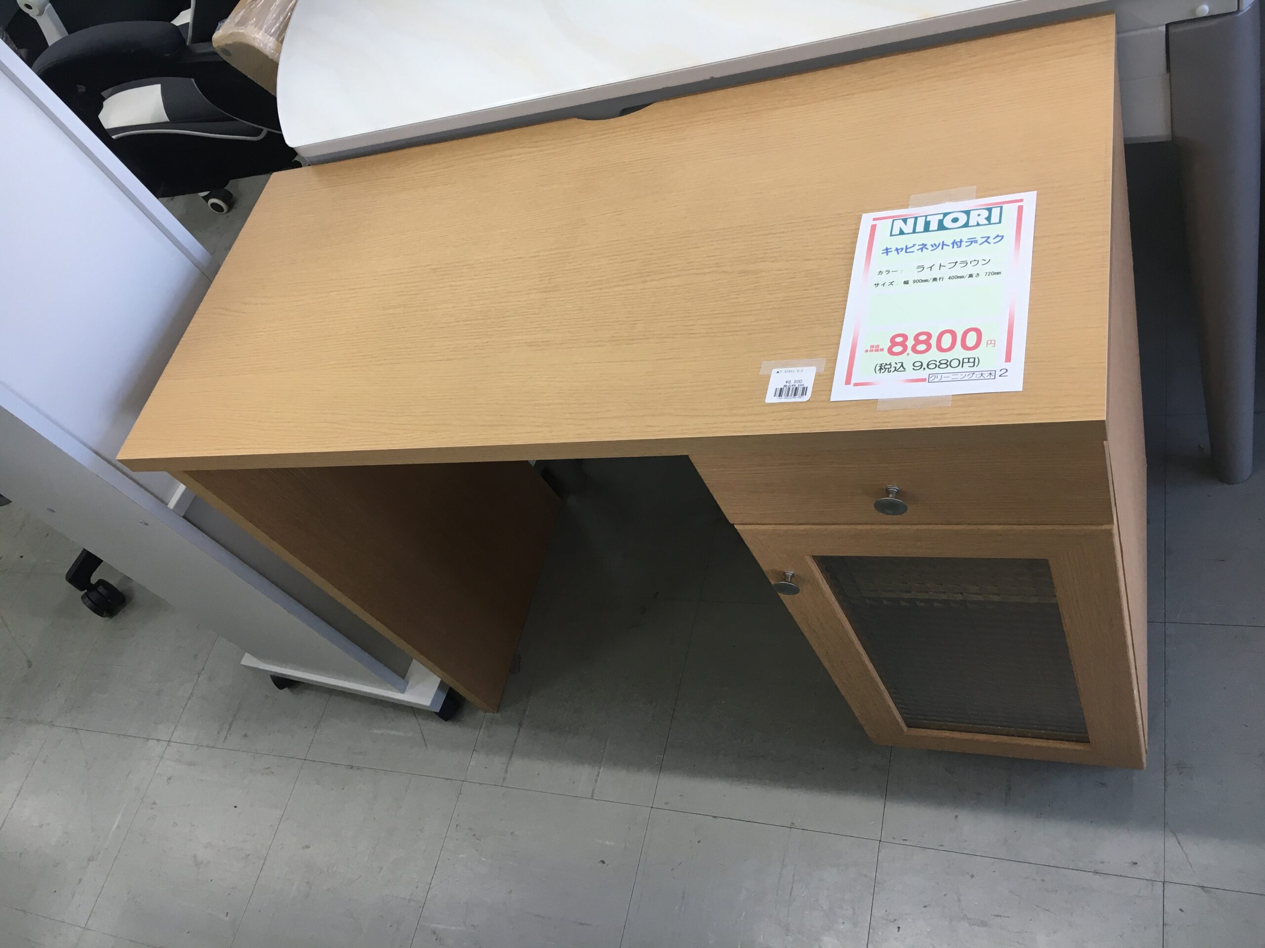 中古 ニトリ キャビネット付きデスク ライトブラウン