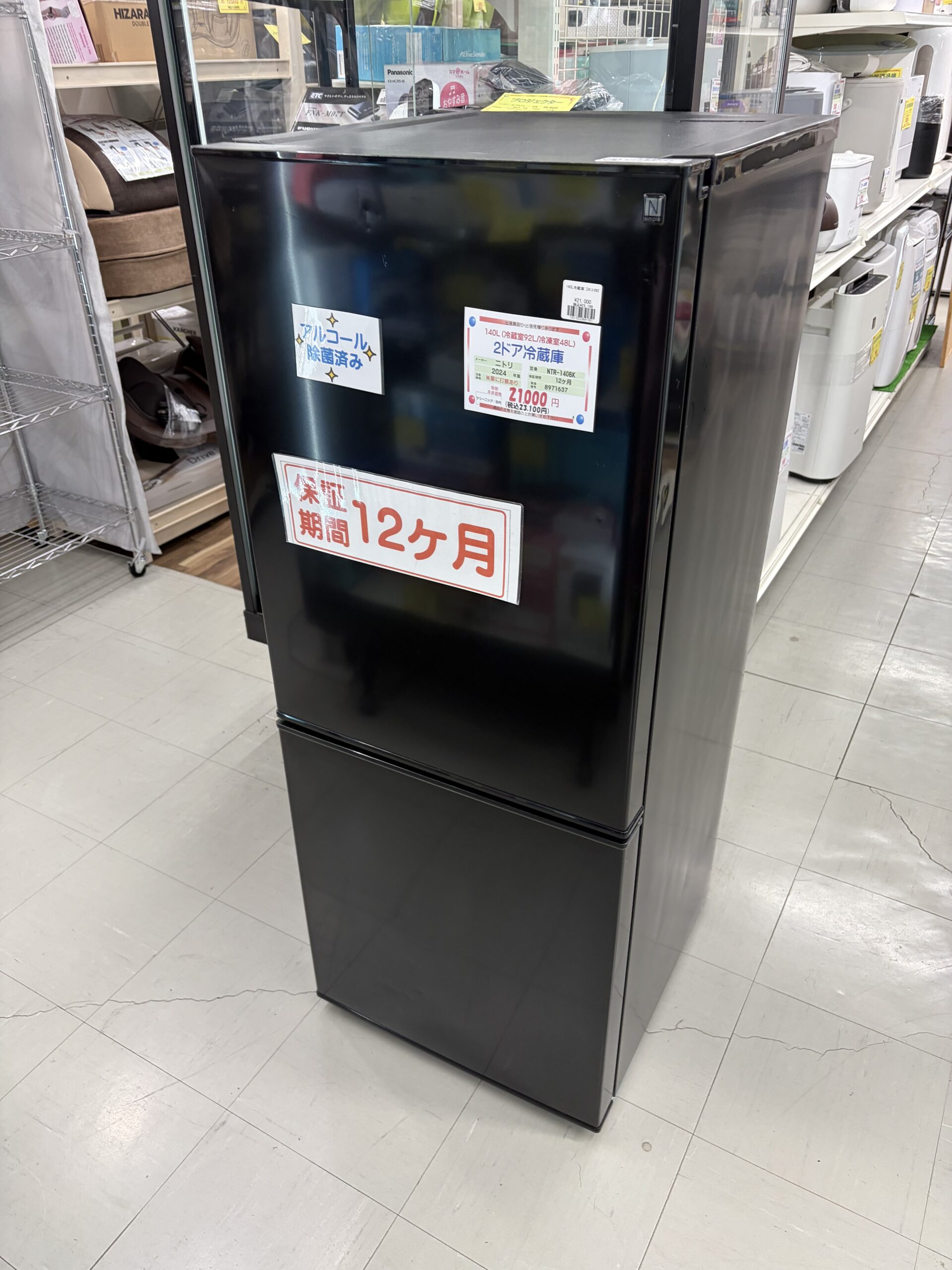 中古 ニトリ 140L 2ドア冷蔵庫 2024年製 NTR-140BK