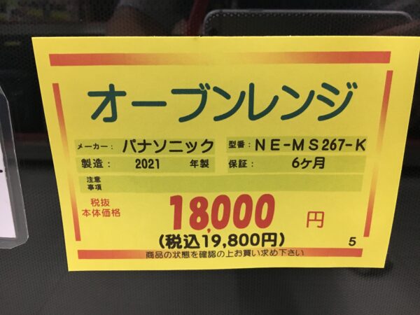 中古 パナソニック オーブンレンジ 2021年製 NE-MS267-K