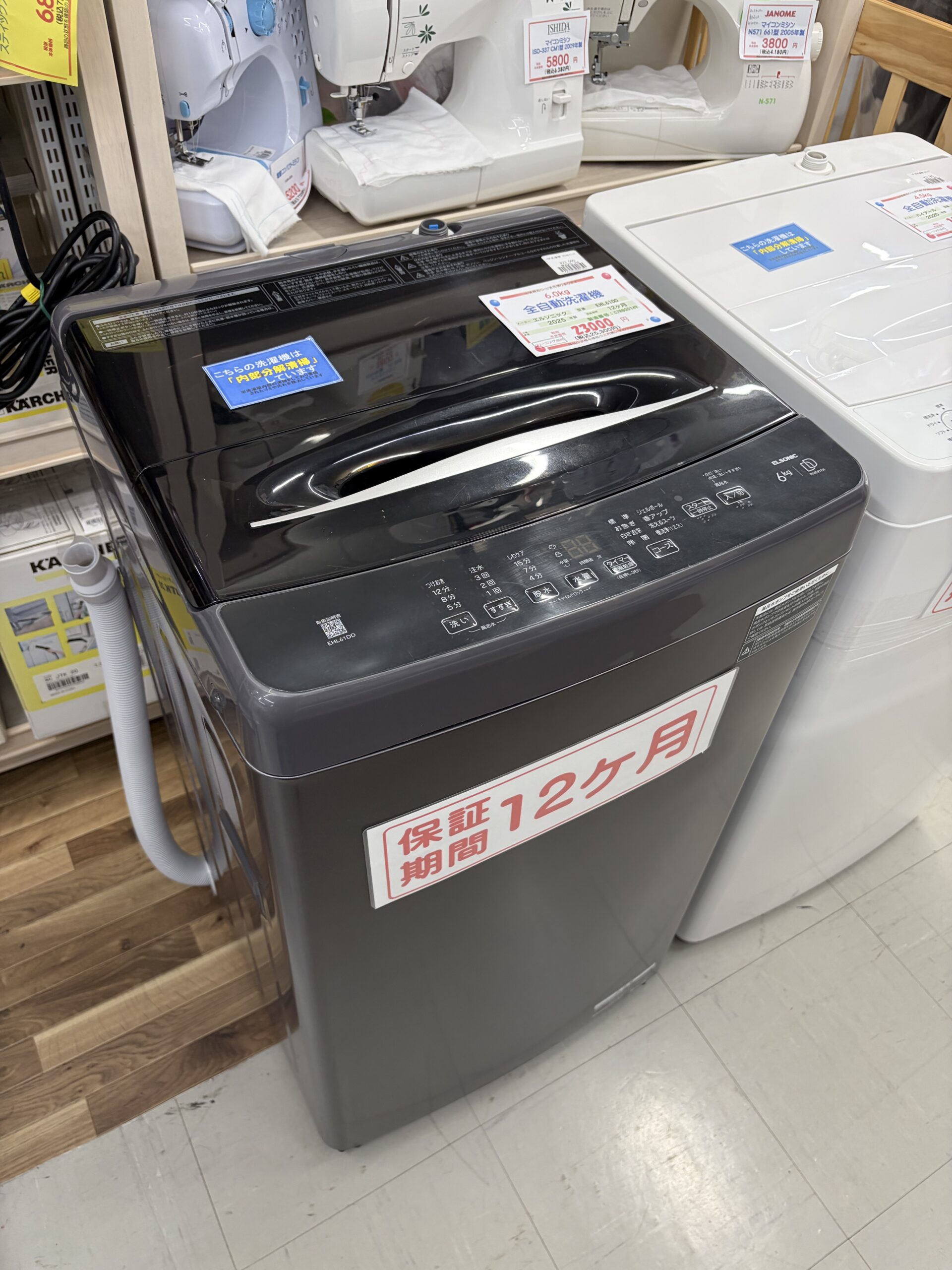 中古【分解清掃済み】エルソニック 6.0K 全自動洗濯機 2025年製 EHL61DD