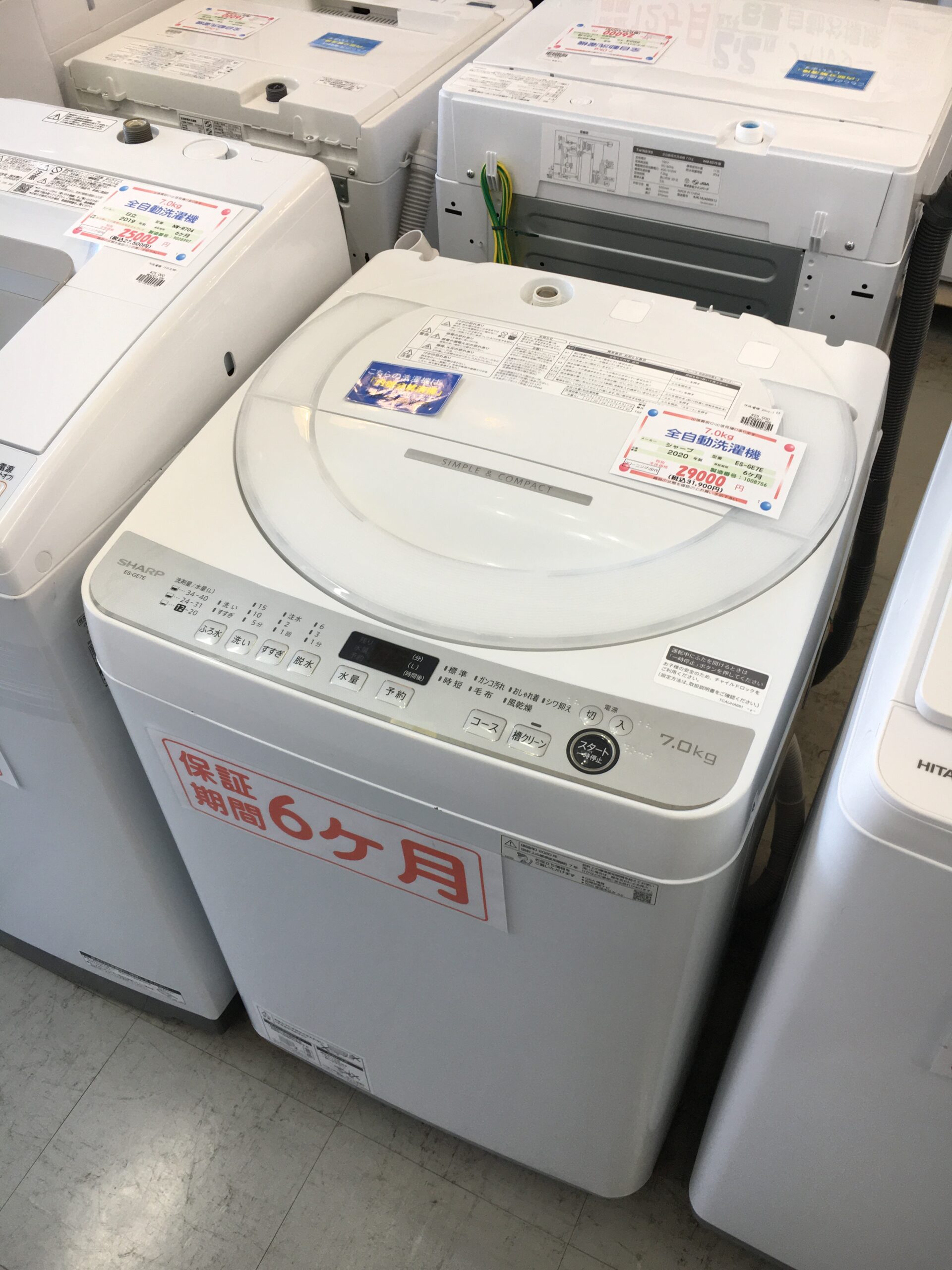 中古【分解清掃済み】シャープ 7.0K 全自動洗濯機 2020年製 ES-GE7E