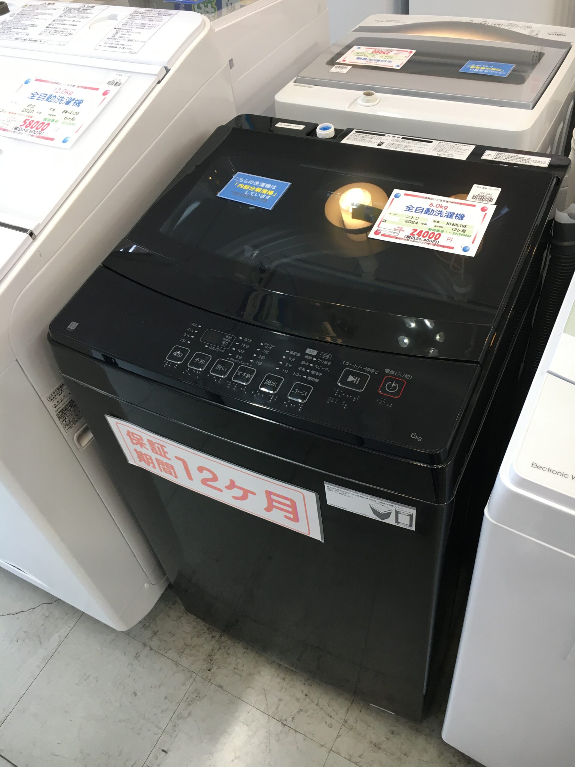 中古【分解清掃済み】ニトリ 6.0K 全自動洗濯機 2024年製 NTR60L1BK