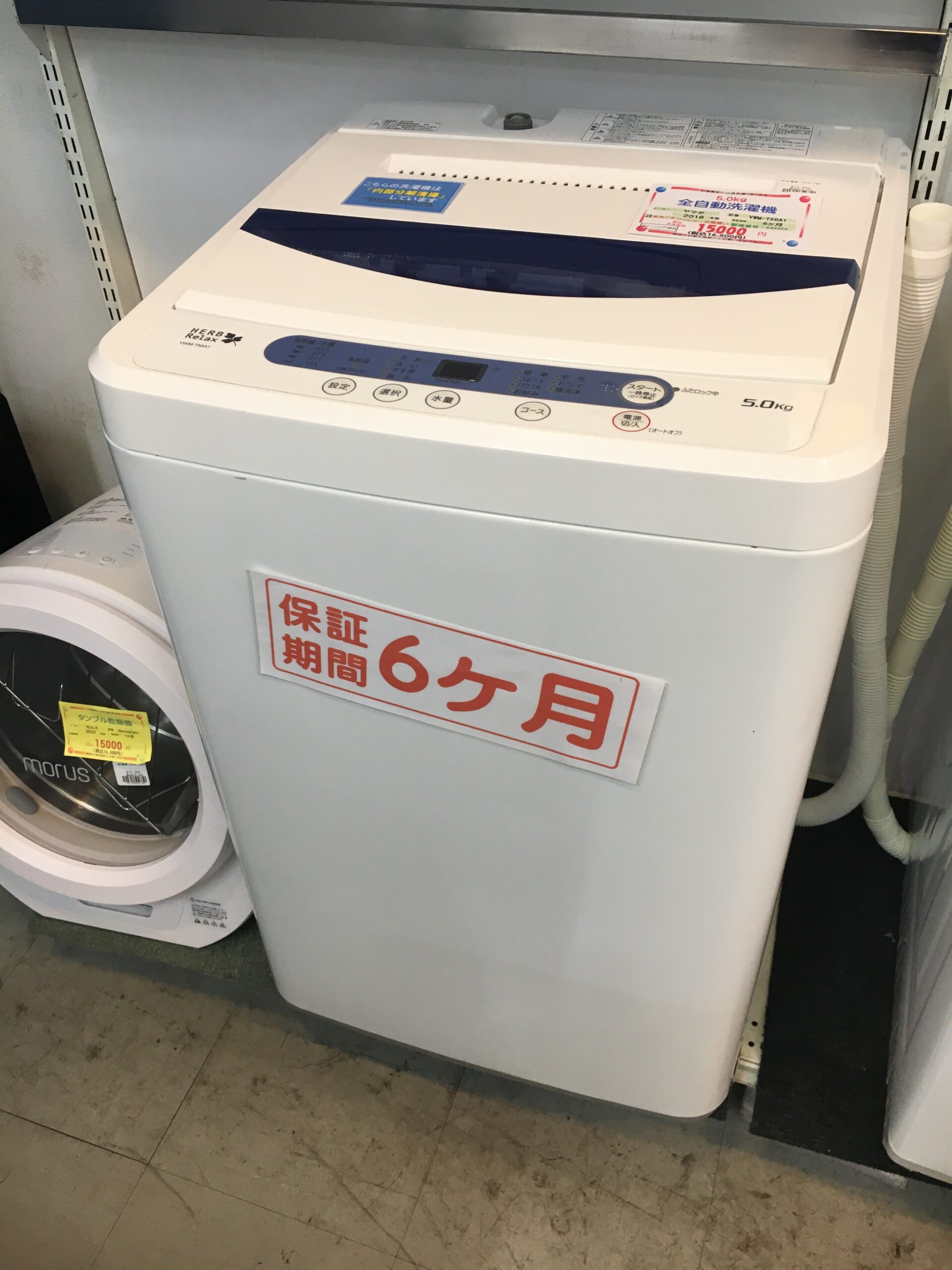 中古【分解清掃済み】ヤマダ 5.0K 全自動洗濯機 2018年製 YWM-T50A1