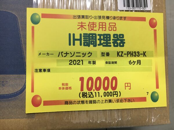 / 未使用品 パナソニック IH調理器 2021年製 KZ-PH33-K